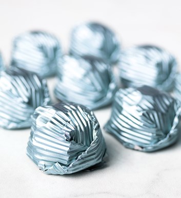Yaldızlı çikolatalarımızın içeriği fıstık pral olarak üretilmektedir